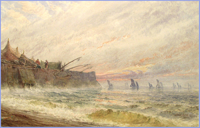 John Squire (fl.1867-1896) was a landscape and seascape painter mainly in watercolour. His subjects were found particularly in Devon and Cornwall, Wales and Normandy. He exhibited `Newlyn` at the RBA in 1873 and `Watergate Bay`, Cornwall at the RA the same year.