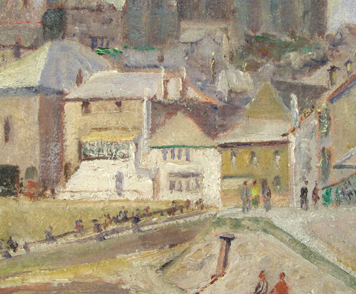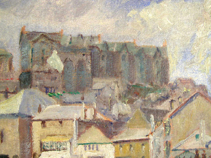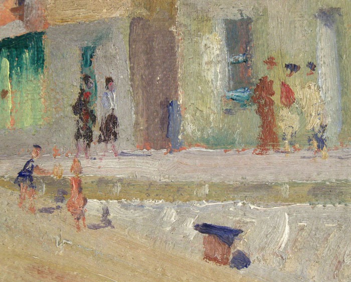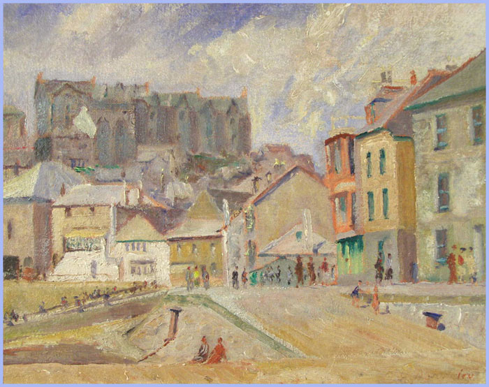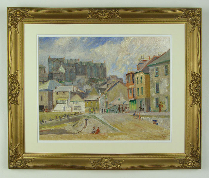 Frederick Bottomley was educated at Truro High School, which is probably where his love of the West Country arose. It would appear that his family lived in Southport, Lancashire. After school he followed his father into the cotton business, but during WW1 left to join the Forces, spending three years in France. After the Armistice he decide to become a painter , and studied at the Slade School of Art between1923-5. Having married, he and his wife moved to St.Ives in 1929, where they lived at `Salubrious House`, Fore Street. Fred worked out of Porthmeor and Dragon studios, Norway Square. After the outbreak of WW2 they appear to have moved back to Southport for a couple of years. Among 10 pictures exhibited at the RA between 1931 and 1944 were paintings of the harbour, slipway and Down along in St.Ives -this may have been one of them! In 1952 he returned permanently to Southport. Bottomley exhibited widely, several times at the Royal Academy and the Royal Institute of Painters in Oils, also the Royal Society of British Artists and the St.Ives Art Society.
